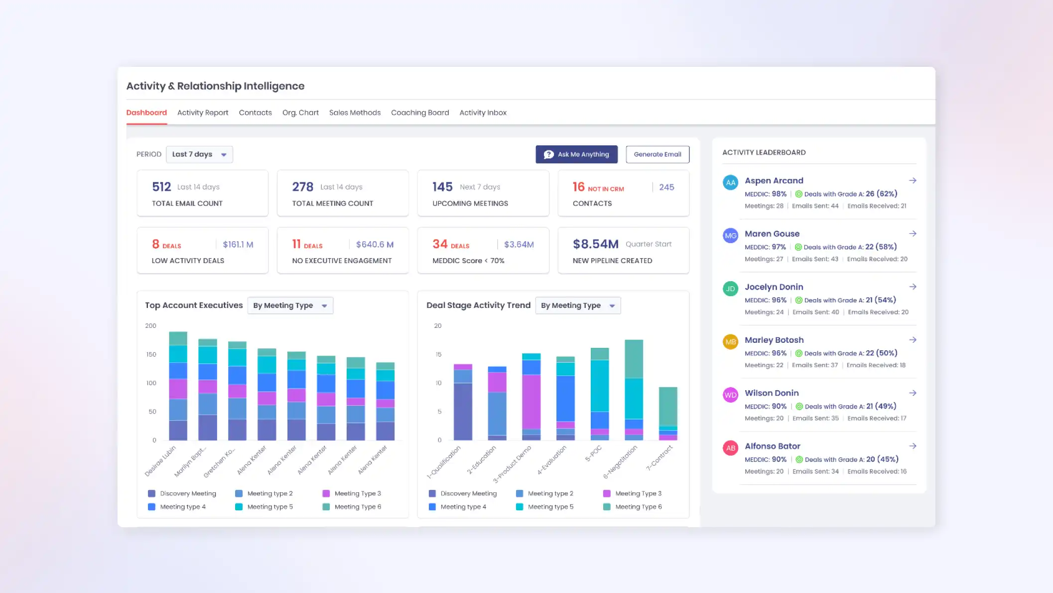 In our continuous innovation journey, 2024 also saw advancements in Aviso's Activity & Relationship Intelligence, that enables tracking of seller activity and buyer relationships at the rep level with features like Activity Dashboard, Activity Inbox, Activity Insights graph, and more. These features not only pinpoint critical engagement gaps but also foster stronger, more strategic buyer-seller relationships, integral for navigating complex sales dynamics and boosting revenue outcomes.